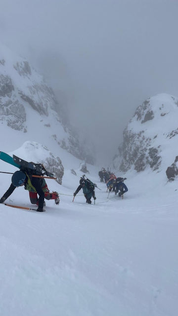 Montée par le Vermicelle, et descente par le Central ! Toujours de la neige de rêve, une belle ambiance montagne en haut, et une séquence émotion au moment d’enjamber la corniche pour se lancer dans la descente 😎